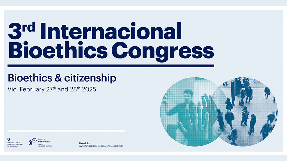 The Fundació Grífols UVic-UCC Chair of Bioethics organizes the 3rd International Bioethics Congress on 27 and 28 February 2025 in Vic (Catalonia, Spain). This year, the conference will focus on Bioethics and Citizenship. The aim is to provide a forum for reflecting on the importance of extending bioethics beyond the academic realm, fostering citizen participation in debates on issues that have a bearing on their health and day-to-day lives.
